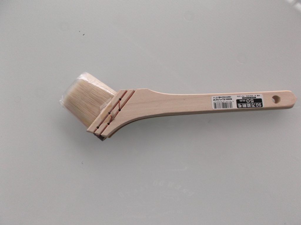 上の写真は、普通の刷毛です。壁や何かに、ペンキなどを塗るときに、一般的に使われる物ですが、この写真を取り上げた理由は、手で持つ部分(取っ手)と、刷毛の毛先の角度に注目してもらいたいからです。この刷毛を使って、目の前にある壁にペンキを塗る場合、身体の正面の左から右にまっすぐな、直線を描こうとしたら、一番良い方法は、毛先と取っ手部分が、同じ線上を動くことで、やや細い直線が描けるでしょう。