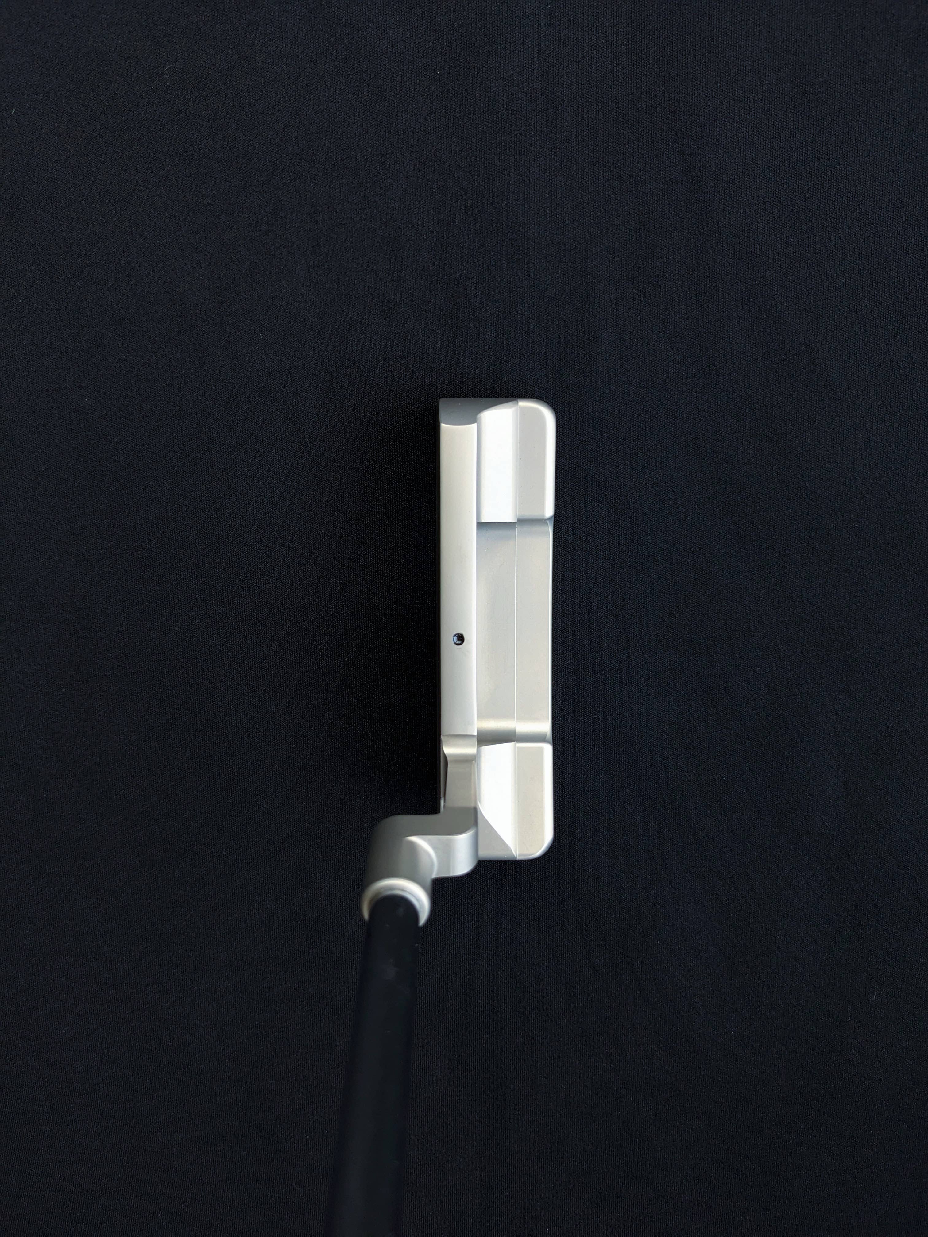 パターの製造方法としては、溶接してつなげる作り方もあるのですが、AMATEURISMのパターは、軟鉄の削り出しで製造しています。鉄のかたまりを、まさに削り出して作られているので、溶接で作るときのような継ぎ目がありません。そんな全身削り出しのAMATEURISMのパターは、ゴルファーに心地よい打感を提供します。